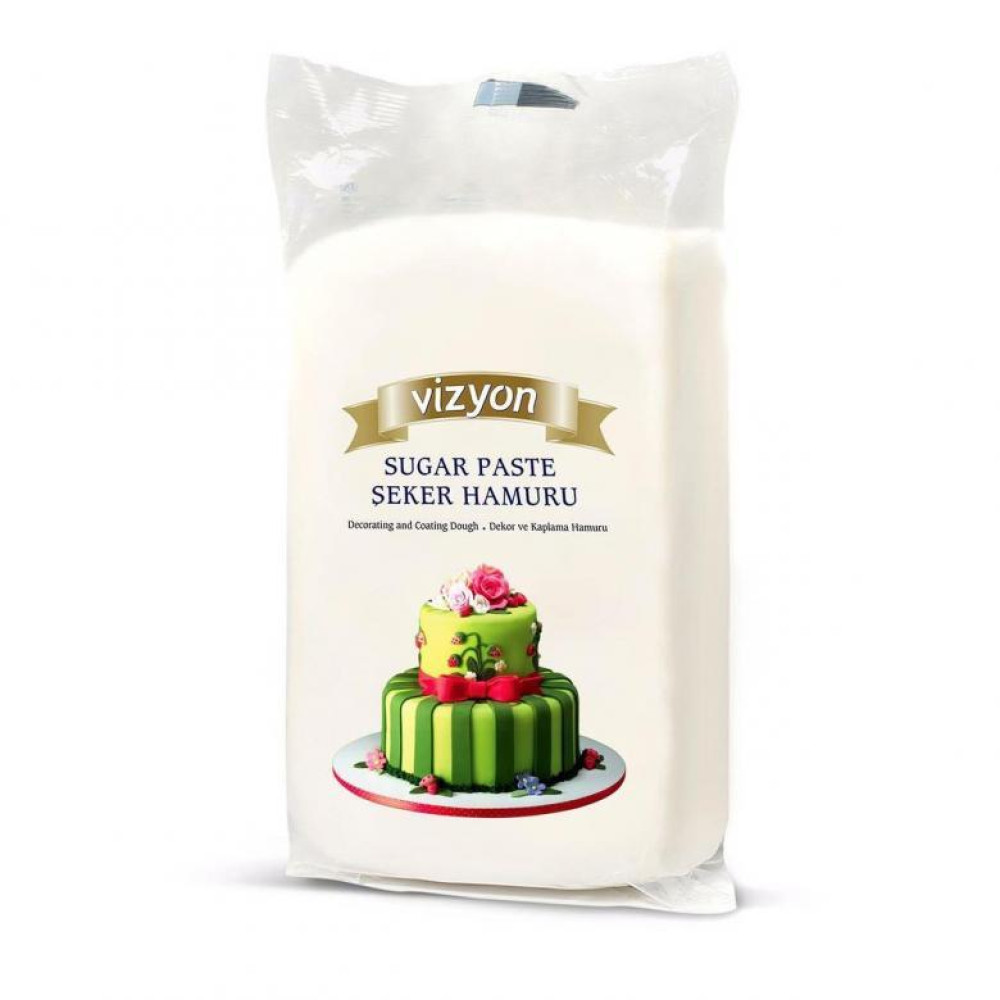 Мастика Vizyon широко применяется для обтяжки тортов и для декорирования кондитерских изделий, представляет собой сахарное тесто, которое можно использовать для декорирования тортов, пирожных и других кондитерских изделий, изготовления различных фигурных деталей.. Отлично окрашивается красителями, а так же не трескается. Имеет сладкий вкус и приятный запах ванили.