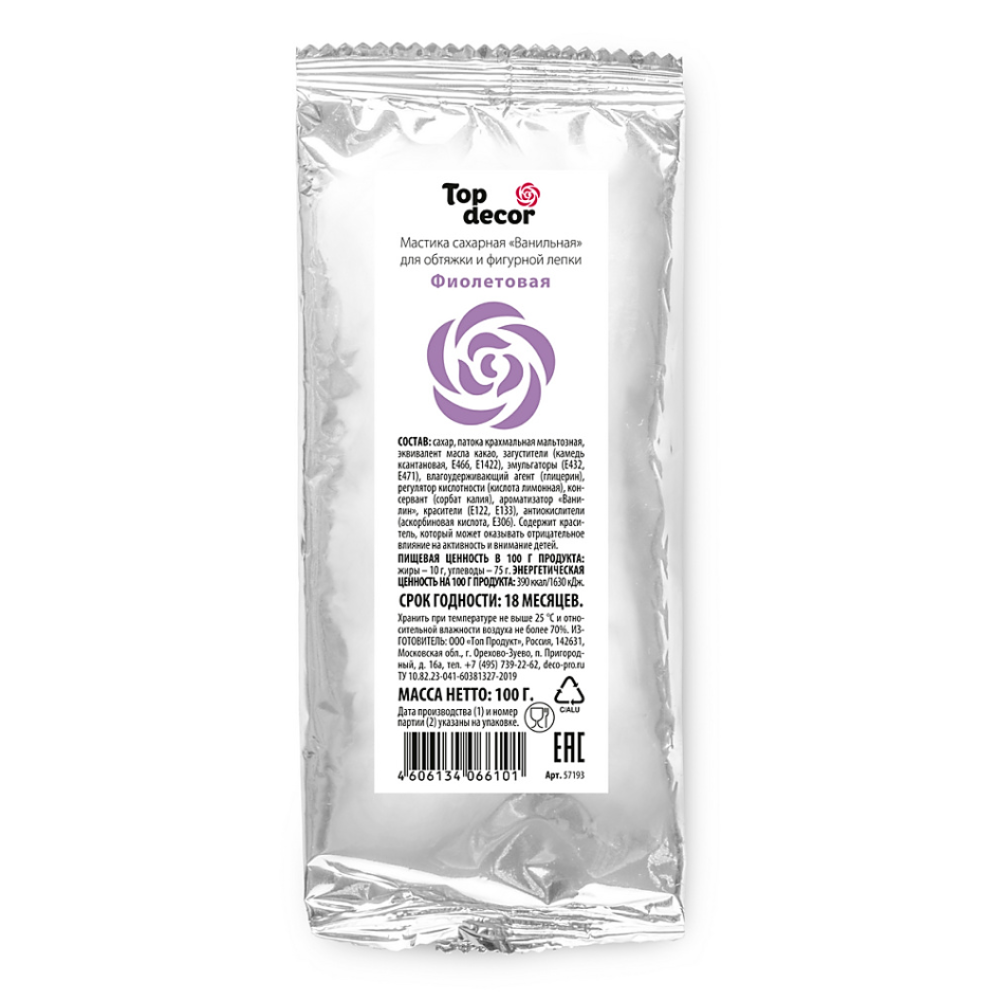 Технические характеристики Мастика сахарная фиолетовая Top Decor