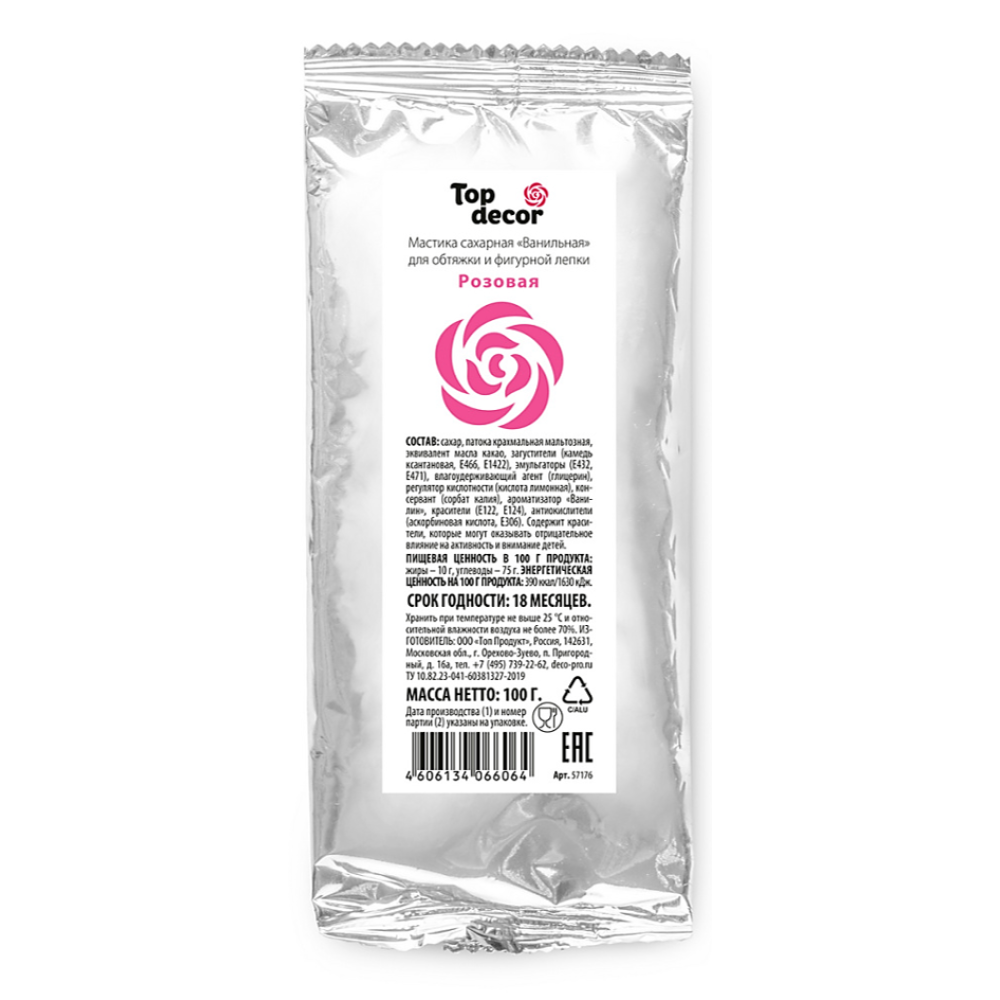 Технические характеристики Мастика сахарная розовая Top Decor, 100 гр