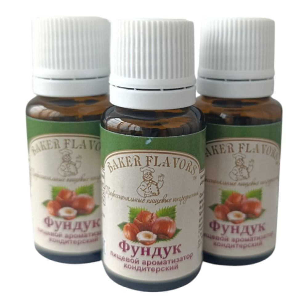 Ароматизатор "Фундук" от Baker Flavors изготовлен из исключительно натуральных ингредиентов, что гарантирует безопасное и качественное использование в пищевой промышленности.