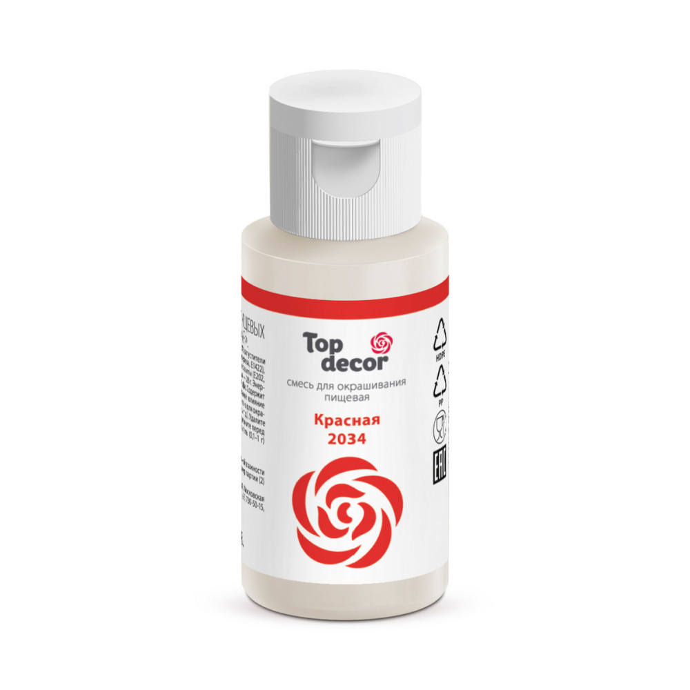 В состав пищевого красителя гелевого "Красный" входят: вода, сахар, пищевые красители (Е102, Е124), загустители (глицерин, камедь гуаровая, камедь рожкового дерева, Е1414), регулятор кислотности (кислота лимонная), консерванты (Е202, Е211). Продукт произведен в России и соответствует всем стандартам качества.