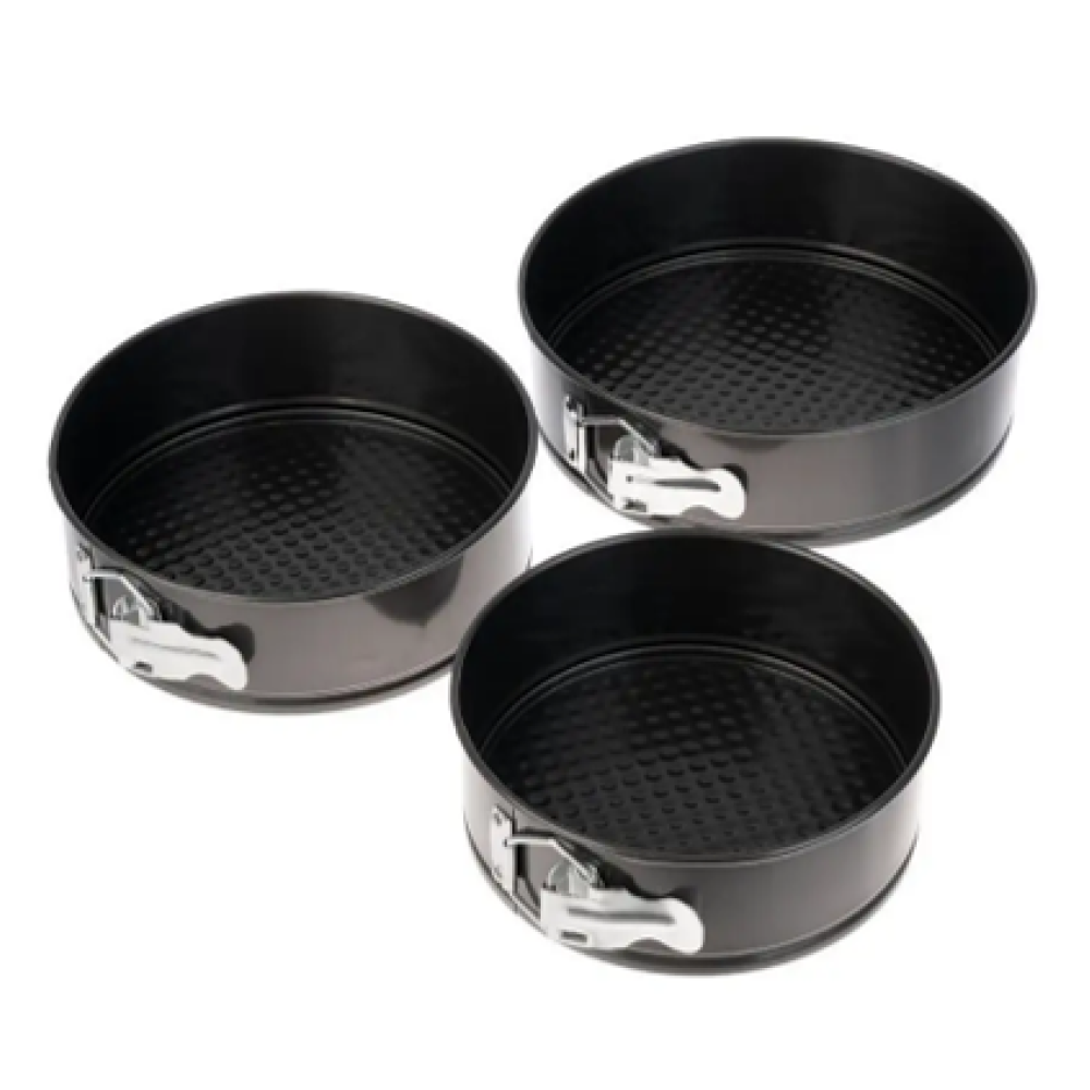Набор состоит из трех круглых форм для торта разного диаметра.