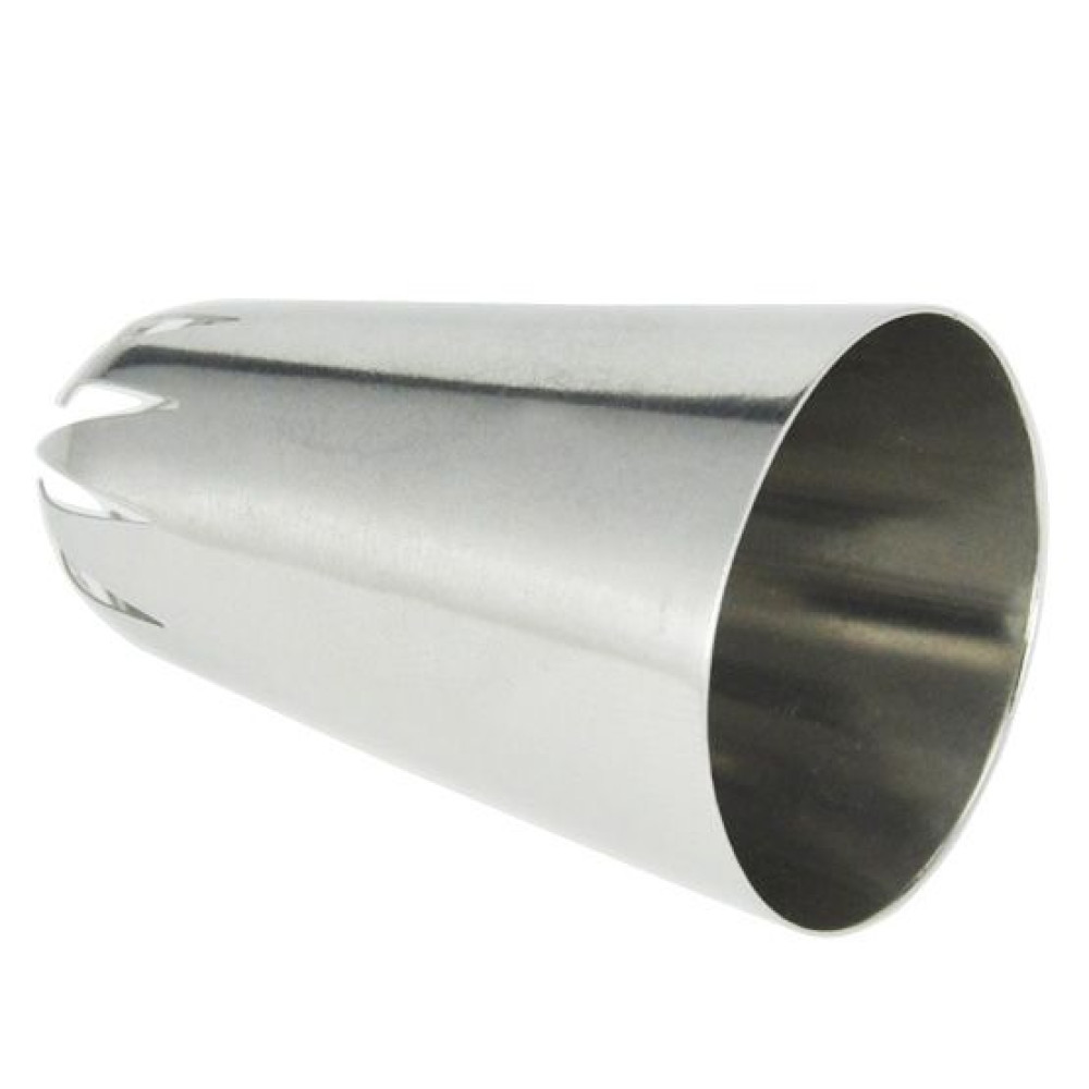 Насадка изготовлена из пищевой нержавеющей стали с использованием лазерной резки, что обеспечивает ее долговечность и безопасность при контакте с продуктами питания. Два отверстия разного диаметра позволяют легко закрепить насадку и формировать кремовые узоры.