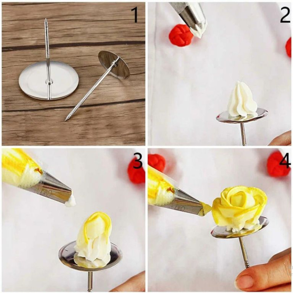 Шляпка этого инструмента служит идеальной рабочей поверхностью для формирования крупных цветков из крема, мастики или марципана. Для увеличения рабочего диаметра можно использовать пергаментную бумагу. Этот гвоздь также удобен для перемещения ваших цветочных украшений между холодильником и тортом, что делает процесс декорирования еще более простым и эффективным.