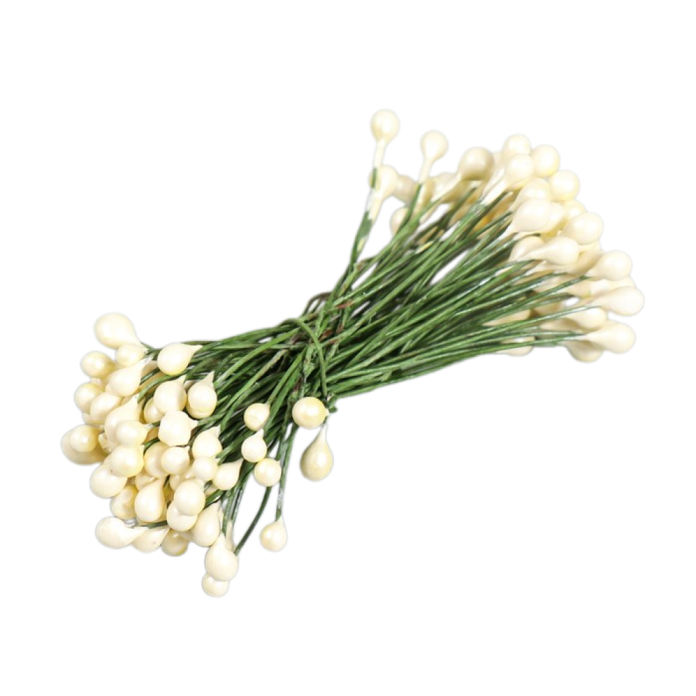 Тычинки изготовлены из безопасных материалов, которые можно использовать в пищевой промышленности. Основа из проволоки позволяет легко фиксировать их в любой позиции, обеспечивая надежность и долговечность ваших украшений.
