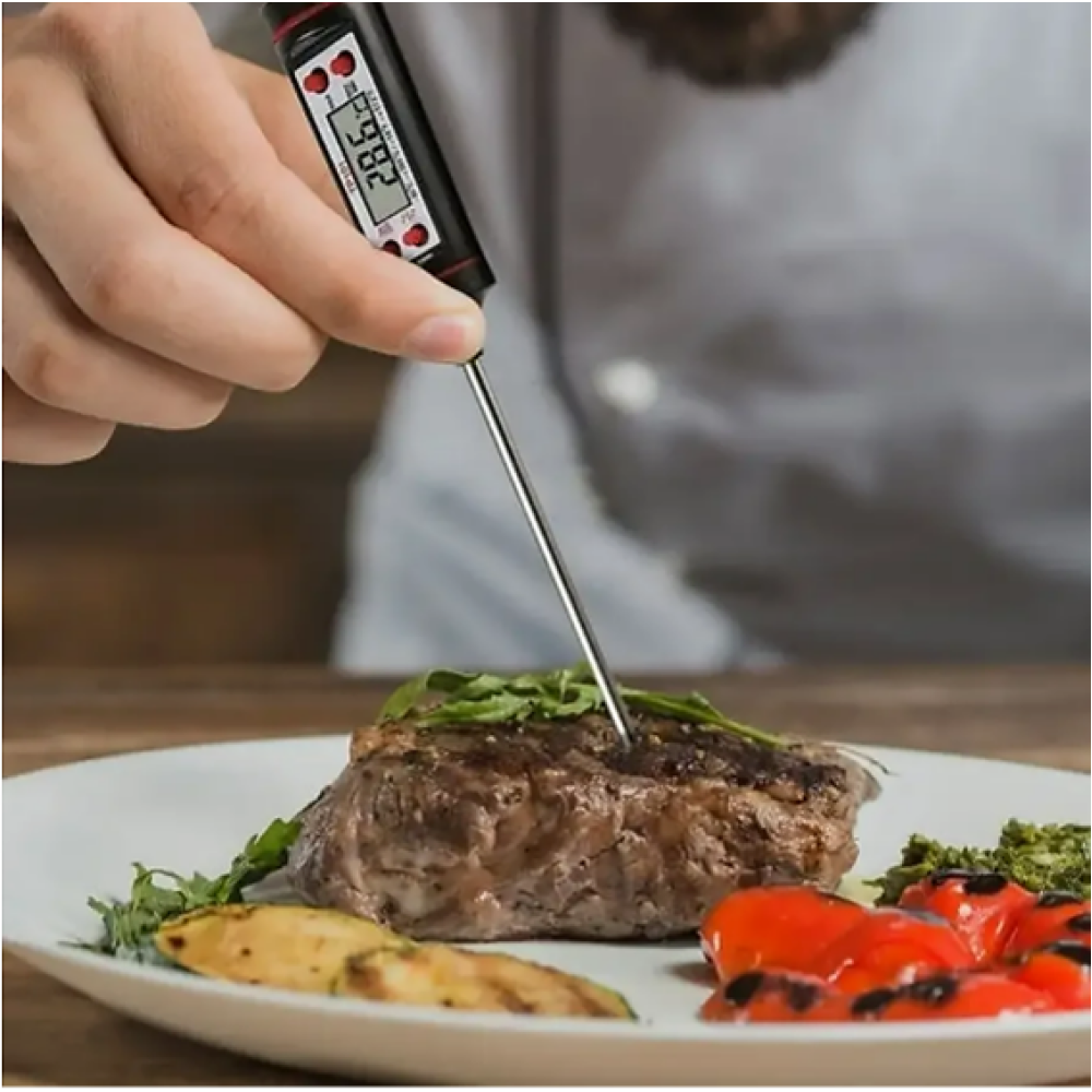 Этот термометр идеально подходит для измерения температуры мяса, птицы, рыбы, выпечки и других продуктов. Независимо от того, готовите ли вы сложный торт или запекаете мясо для праздничного стола, прибор обеспечит точность и удобство. Он также поможет определить уровень нагрева жидкостей, что особенно важно при приготовлении сиропов и соусов.