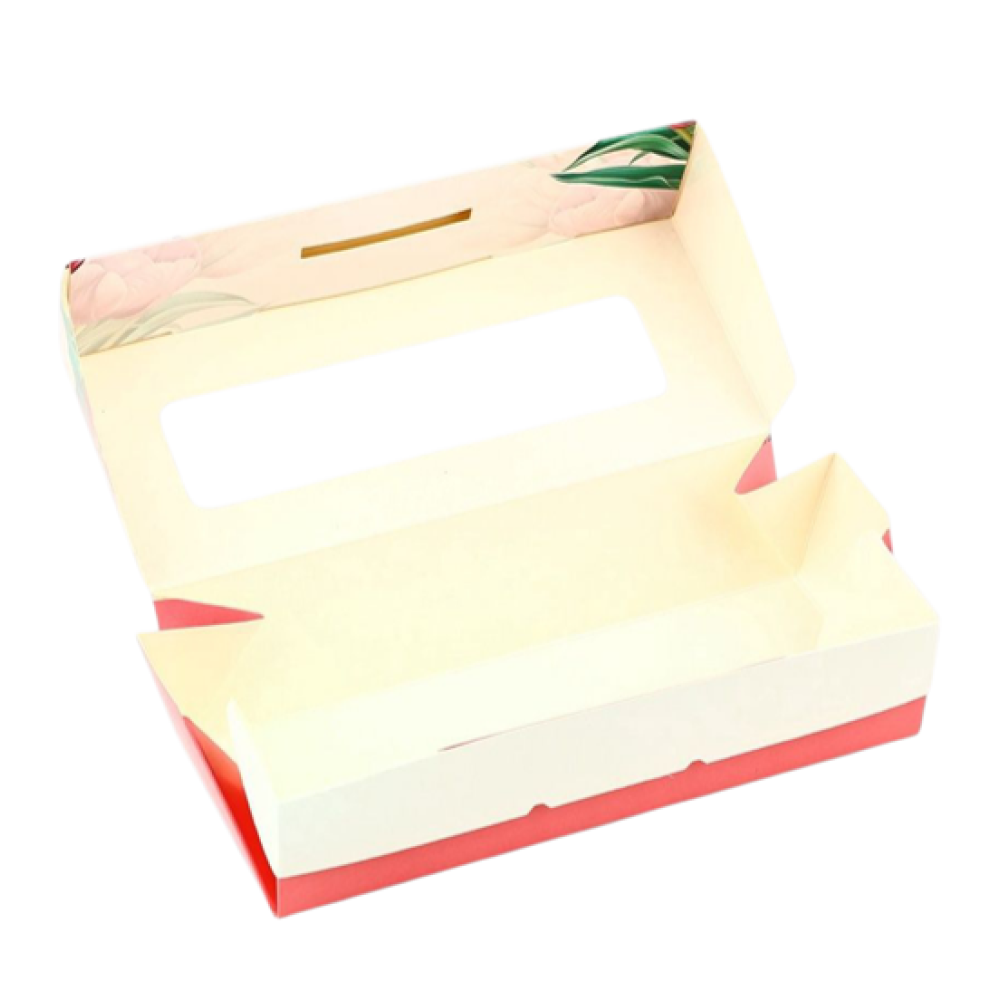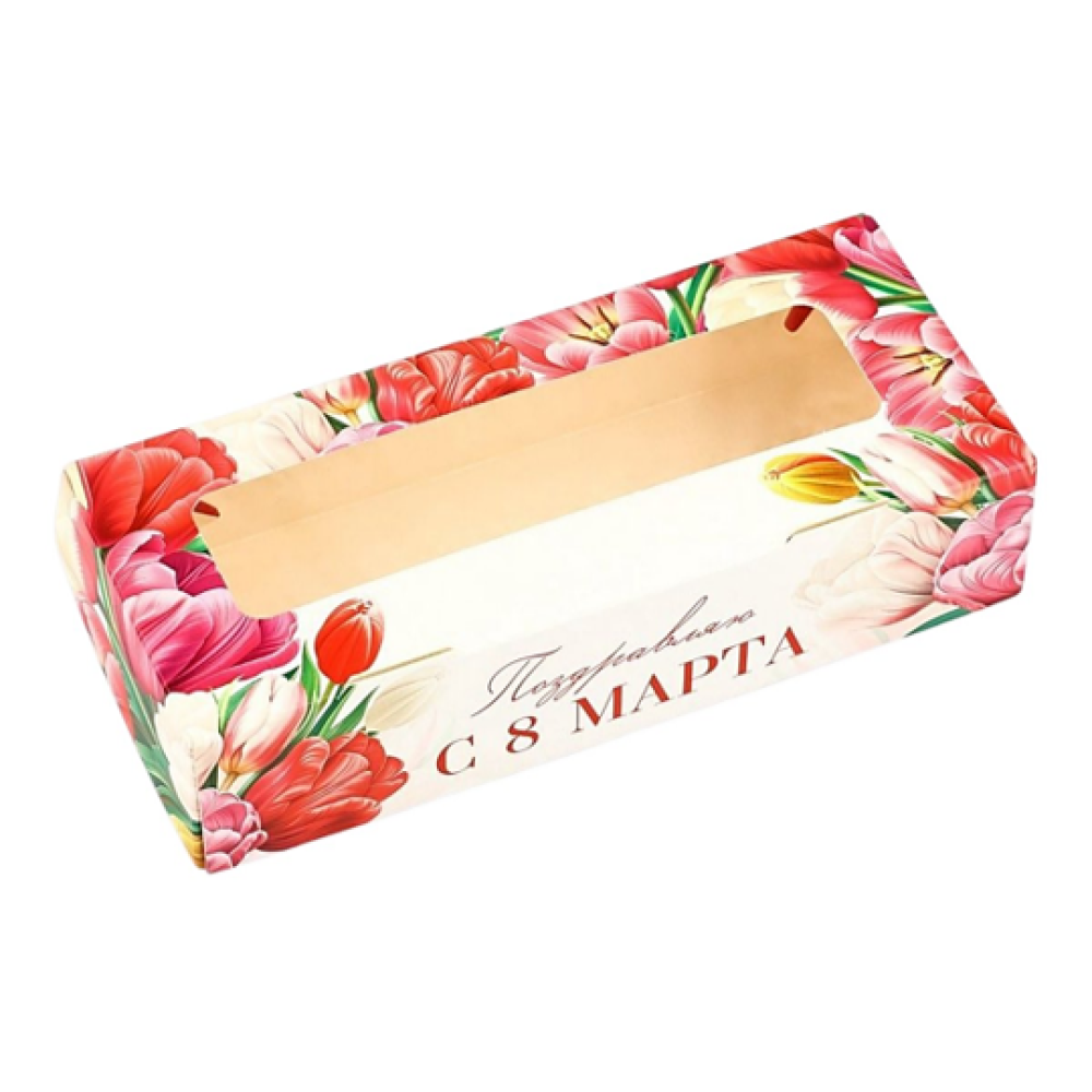 Коробка изготовлена из высококачественного картона, обеспечивающего прочность и устойчивость. Прозрачное окно выполнено из экологически чистого материала, что позволяет демонстрировать содержимое без ущерба для окружающей среды.