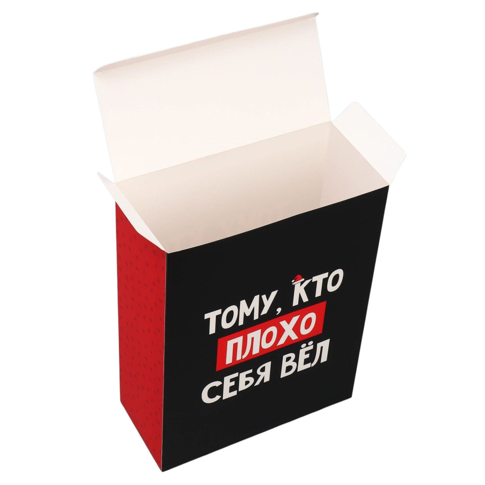 Вместительная коробка для новогоднего подарка со смешливой надписью.