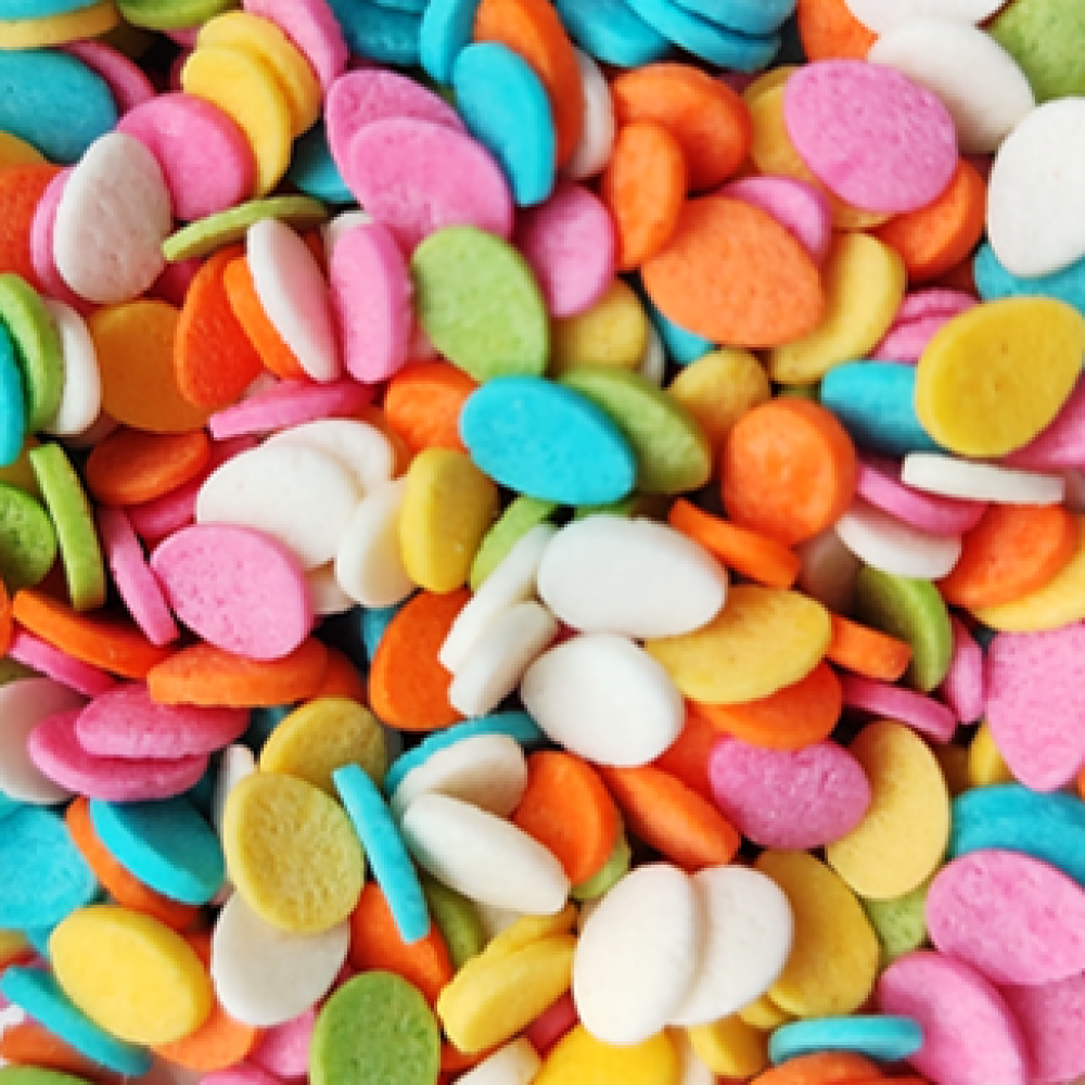 Кондитерская посыпка — это декоративный слой на тортах и пирожных. Посыпка наносится на поверхность торта, также может быть использована для отделки краев десерта, для придания им красивого внешнего вида. Основным правилом при использовании посыпок для торта и пирожных — умеренность в украшении. Очень яркая и праздничная посыпка, напоминает салют, без которого не обходится не один праздник. Украсит любой кулинарный шедевр на любое торжество.