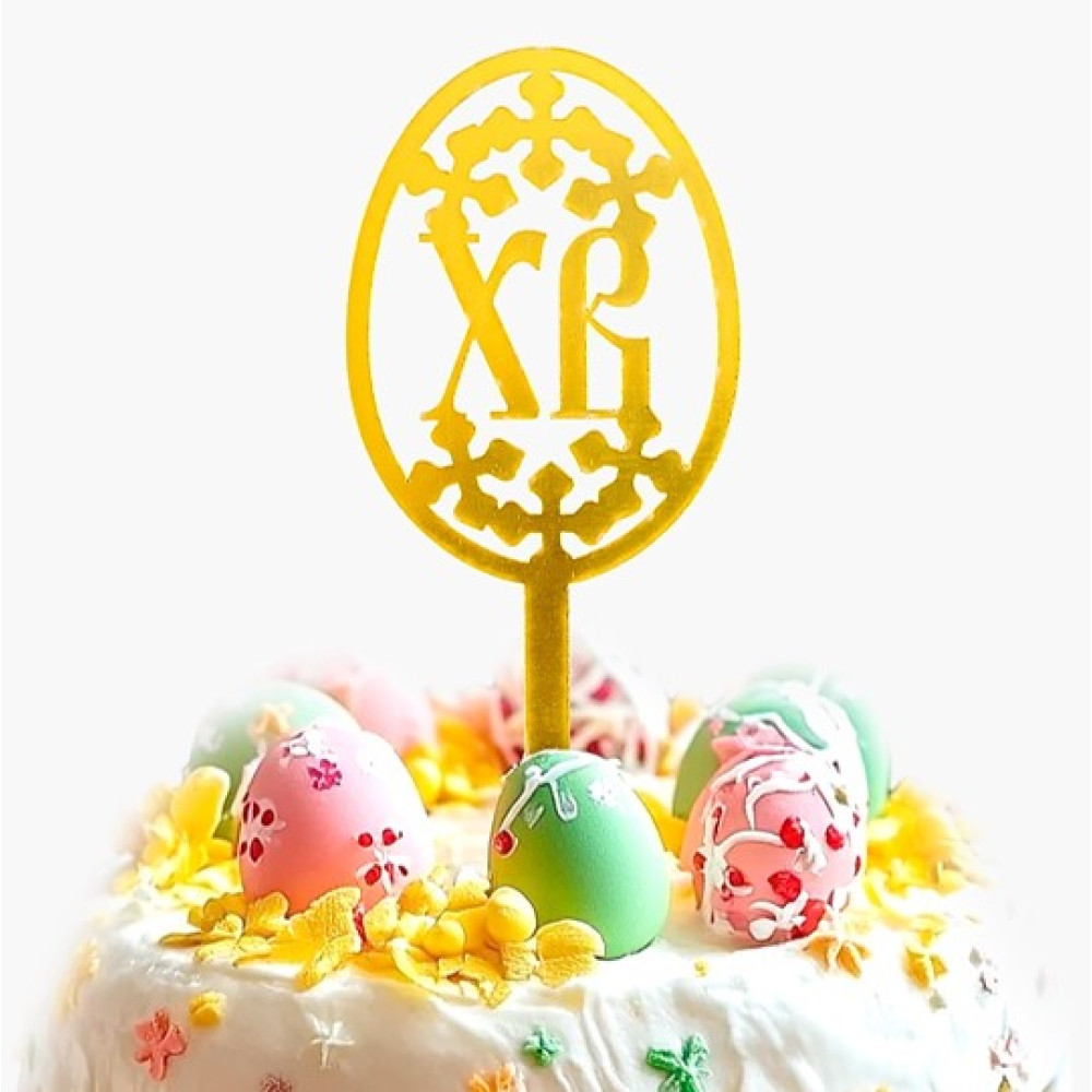 Золотистый пасхальный топпер станет отличным украшением для праздничного стола или корзины. Этот изящный аксессуар подчёркивает светлую атмосферу Пасхи и добавляет нотку торжественности в декор. Он подходит для оформления домашних мероприятий, семейных завтраков или как стильный штрих к подарку.