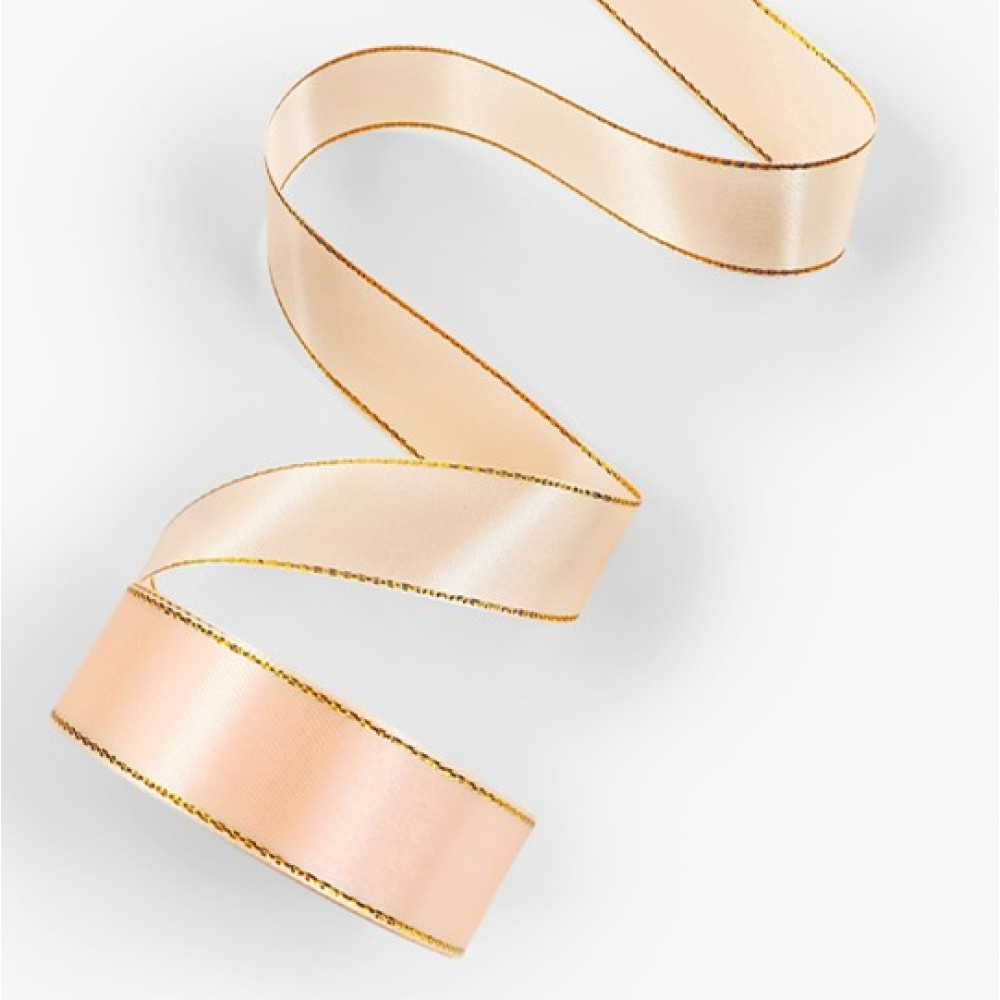 • Лента атласная, с золотым люрексом, 23±1 м, нежно-персиковая №007