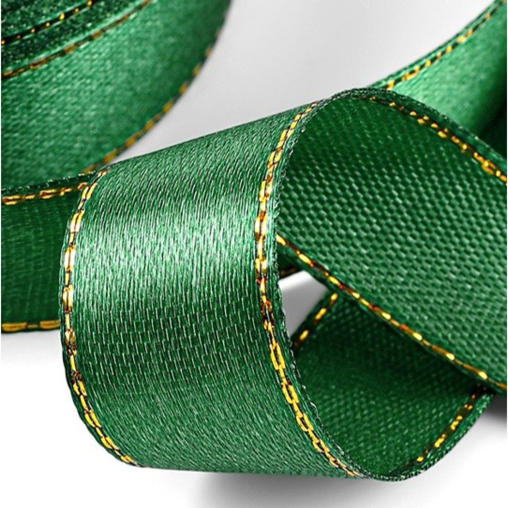Лента атласная, с золотым люрексом 23±1 м, зелёная №049 по лучшей цене