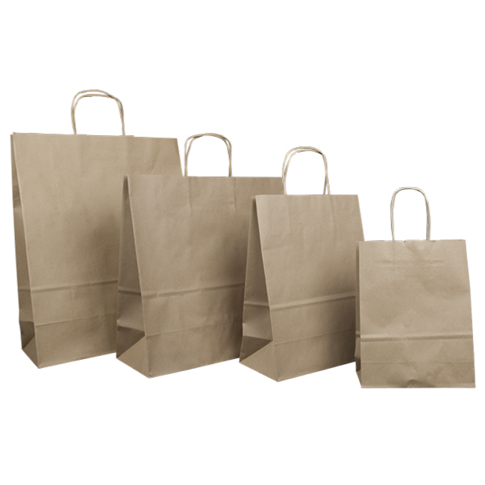 Технические характеристики Пакет бумажный с кручеными ручками, крафт по лучшей цене